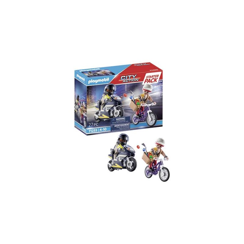 Il set include due personaggi playmobil una moto un casco con visiera guanti una bicicletta gioielli e tanti altri accessori