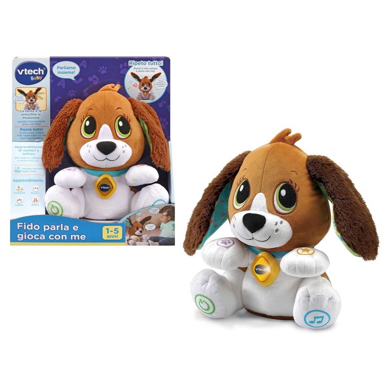 Fido è un peluche soffice e interattivo Accompagna il bambino nell apprendimento della lingua dei numeri dei colori delle emozioni e delle capacità motorie in modo divertente