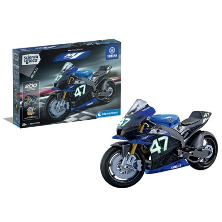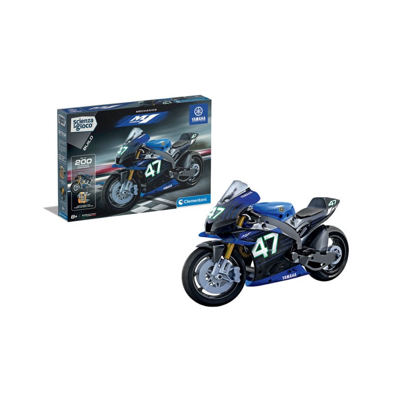 Un kit di costruzioni con cui divertirsi a realizzare il modello della famosa Yamaha M1 vincitrice di tanti Gran Premi in Moto GP Tutti i componenti necessari per realizzare una Yamaha M1 con cambio a 3 velocità sospensioni anteriori e trasmissione a catena L app Scienza gioco Build integra l esperienza di gioco fornendo un supporto al montaggio grazie alle animazioni 3D interattive Design di stile con scocche studiate per essere fedeli alle originali Il manuale illustrato permette di assemblare il modello passo dopo passo
