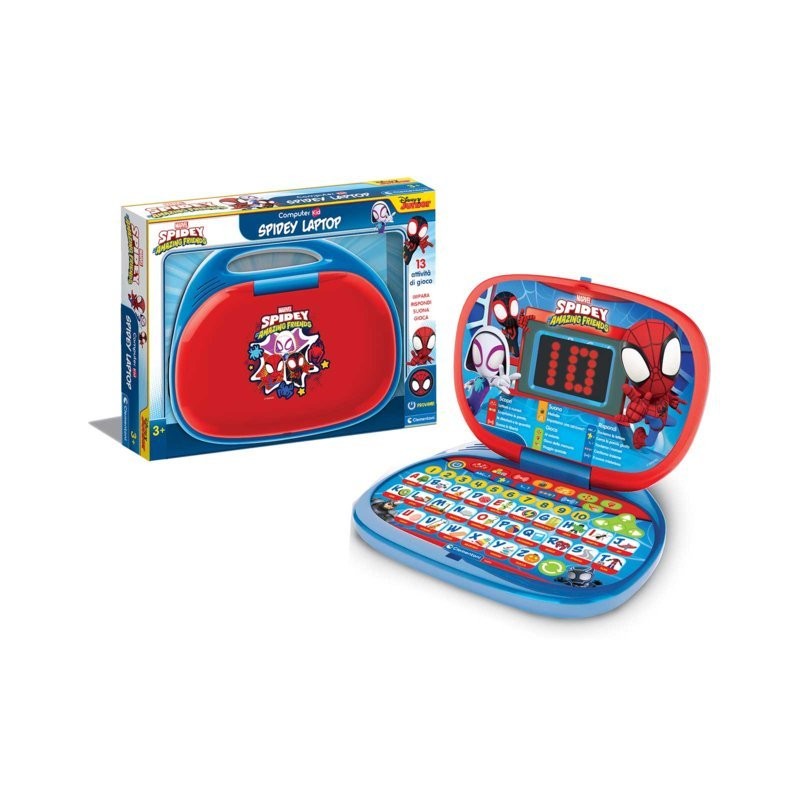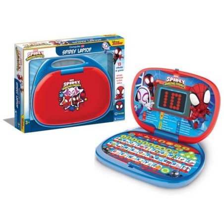 Un laptop interattivo e illustrato per entrare nel fantastico mondo di Spidey Il bambino scoprirà l alfabeto i suoni delle lettere e si avvicinerà alla lettura scoprendo lettera per lettera le prime parole Sarà possibile imparare le melodie più famose rispondere alle domande e giocare allenando la destrezza e la memoria 13 attività di gioco in Italiano e in Inglese Con un simpatico schermo dai grandi LED luminosi Per avvicinarsi alla lettura approfondire il lessico il riconoscimento di numeri e quantità l associazione oggetto parola la memoria e la curiosità