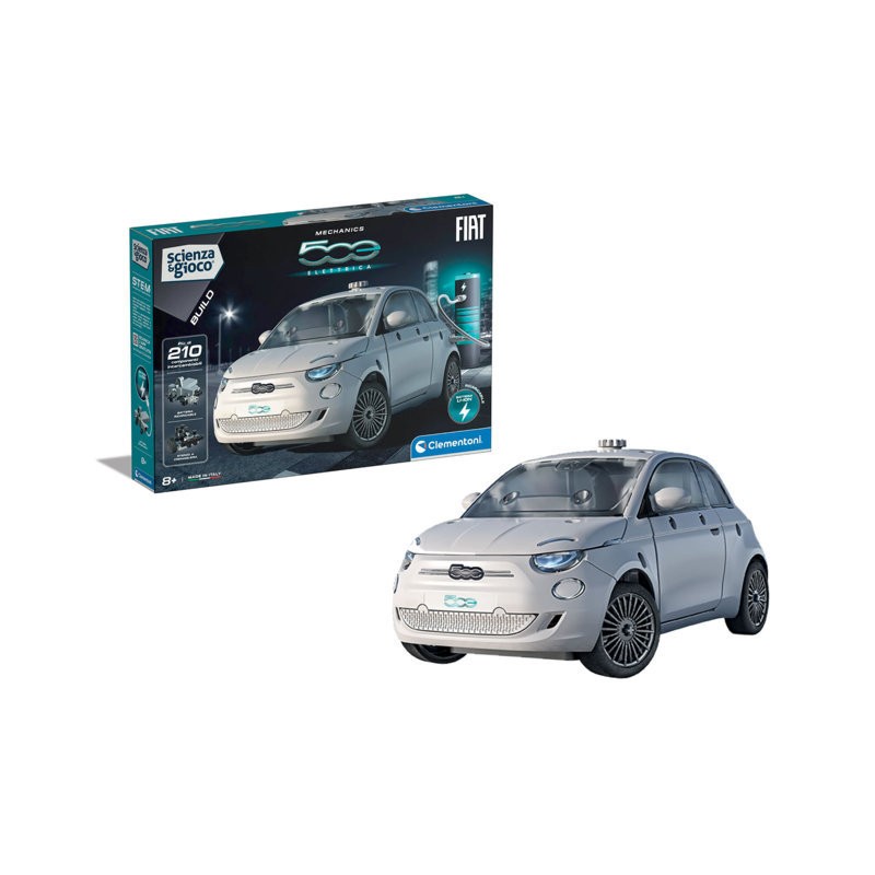 Un kit di costruzioni con cui divertirsi a realizzare il modello della FIAT 500 elettrica Il modello è azionato da un motore elettrico alimentato da una batteria a litio ricaricabile L app Scienza gioco Build integra l esperienza di gioco fornendo un supporto al montaggio grazie alle animazioni 3D interattive Nel kit vengono forniti tutti i componenti per assemblare l auto e i suoi meccanismi interni sterzo a cremagliera e trasmissione differenziale Un simbolo dell innovazione del brand FIAT per conoscere le auto elettriche e il futuro della mobilità