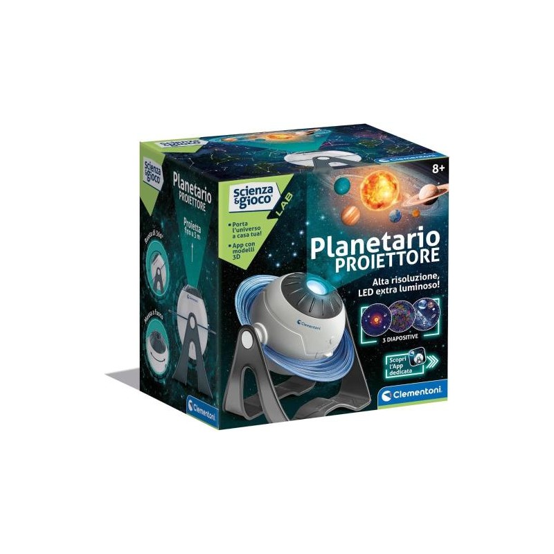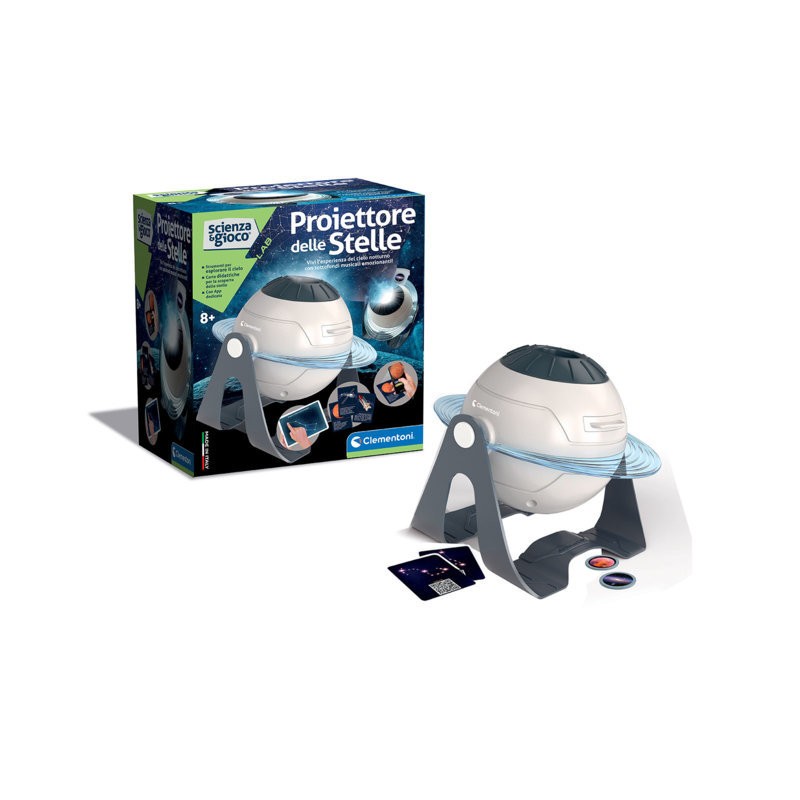 Un Planetario proiettore per osservare e ammirare le stelle le costellazioni i pianeti del sistema solare e tanto altro proprio sulle pareti della tua camera Scegli tu cosa proiettare e cambia le diapositive del Planetario L App dedicata consente di accedere a tanti contenuti come quiz la storia dell Universo visualizzare le costellazioni e i pianeti grazie la Realtà Aumentata Pensato per apprendere la scienza dell astronomia in maniera innovativa e divertente Ideato e progettato in Italia
