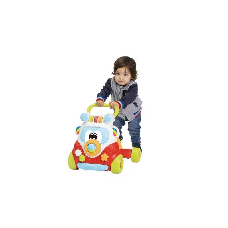 Happy Hippy 2in1 è il divertente Primi Passi per bambini di Chicco a forma di pulmino che è allo stesso tempo anche un ricco centro attività per stimolare la creatività e la manualità Happy Hippy è i