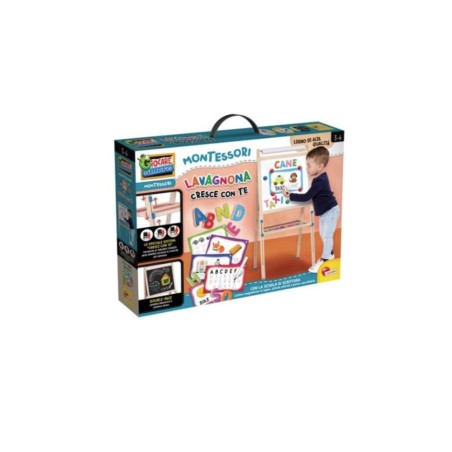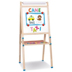 Una maxi lavagna da terra realizzata in legno di alta qualità Con un ricco kit di giochi educativi permette al bambino di imparare a leggere e scrivere