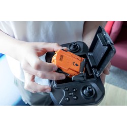 FOTOCAMERA INTEGRATA PER IMMAGINI E VIDEO LIVE La fotocamera 720K a bordo del drone offre immagini e video dal vivo che possono essere trasferiti direttamente su uno smartphone Con il pratico supporto sul telecomando puoi collegare il tuo smartphone e mon