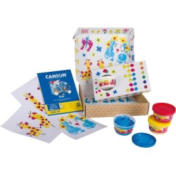 Contiene 4 barattoli colori a dita 100ml rosso giallo cyan e bianco 1 album Canson Kids A5 da 20 fogli bianchi