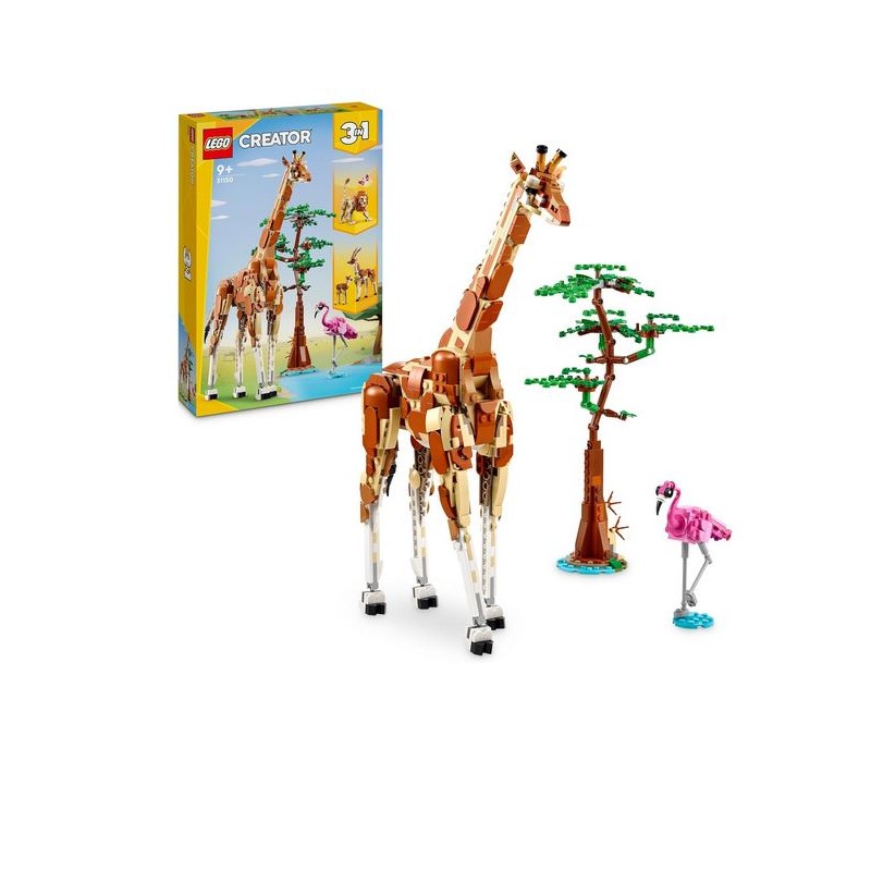 I bambini e le bambine dai 9 anni in su possono partecipare a un fantastico safari con questo set giocattolo costruibile Animali del safari LEGO Creator 31150 I bambini possono divertirsi a giocare con questi animali giocattolo che includono una giraffa con gambe snodabili lungo collo coda e orecchie in piedi accanto a un piccolo albero di mattoncini e un fenicottero Tutti e 3 i modelli sono attraenti oggetti che possono essere esposti al termine del gioco Questo set LEGO offre ai bambini un mondo di possibilità di gioco con 3 diversi animali giocattolo che possono essere costruiti con gli stessi mattoncini I bambini possono realizzare una giraffa snodabile con un albero e un fenicottero ricostruirla in 2 gazzelle snodabili una madre con il suo cucciolo e 2 cespugli oppure trasformarla in un leone giocattolo con un albero e una farfalla