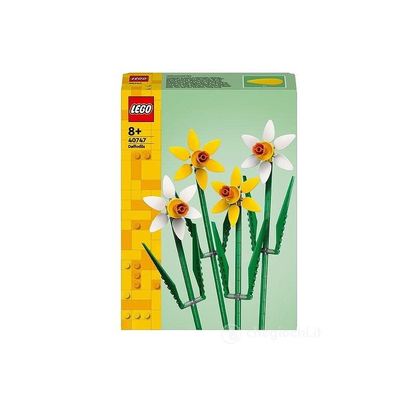 Regala dei fiori che durino per sempre con il set di fiori finti LEGO Creator Narcisi 40747 Un kit per adulti bambini e bambine da 8 anni in su con cui realizzare una deliziosa decorazione per la casa o un colorato accessorio per la camera da letto Questo set della gamma di fiori e piante LEGO comprende 4 fiori artificiali costruibili dai colori pastello e include 2 narcisi gialli e 2 narcisi bianchi ciascuno con steli verdi e foglie regolabili per incoraggiare la personalizzazione Una volta completato questo mazzo di fiori LEGO può essere esposto da solo o abbinato agli altri set della gamma venduti separatamente per creare un grande bouquet di fiori LEGO ricco di colori e forme