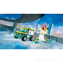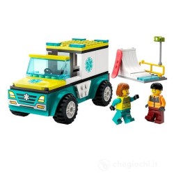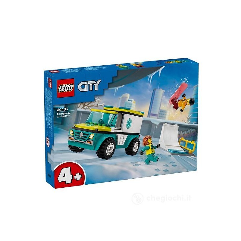 Partecipa con il tuo piccolo costruttore a un gioco fantasy ricco di divertimento con il playset LEGO City Ambulanza di Emergenza e Snowboarder 60403 Un gioco per bambini e bambine da 4 anni in su con un ambulanza giocattolo da costruire dotata di grandi pneumatici per i soccorsi fuoristrada Questo avvincente set di pronto soccorso giocattolo include una mini scena raffigurante uno skate park innevato e le minifigure del paramedico e dello snowboarder con cui dare vita a tante storie di fantasia Questo set con veicolo giocattolo di emergenza è un ottimo regalo LEGO 4 che contiene anche un elemento Starter Brick Il set facile da costruire comprende una guida illustrata e le istruzioni 3D nell app LEGO Builder Un gioco con le costruzioni per bambini semplice da realizzare grazie all assistente digitale che offre strumenti intuitivi per ingrandire ruotare e visualizzare il modello da tutte le angolazioni Una città che non conosce limiti I set LEGO City comprendono veicoli strutture e personaggi realistici con cui i piccoli si identificano per giocare in completa libertà Un gioco aperto basato su eventi della vita reale che può essere unito ad altri veicoli di emergenza della gamma LEGO City venduti separatamente per un intero mondo di possibilità di gioco