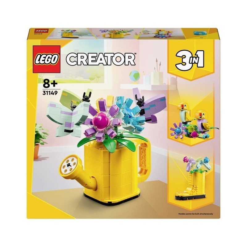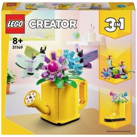 LEGO Creator 3 in 1 Innaffiatoio con Fiori 31149 un gioco per bambini e bambine da 8 anni in su ispirato alla natura e ricco di colori Il set contiene un annaffiatoio giocattolo di colore giallo dotato di manico e di rosetta 3 fiori finti con petali mobili e 3 farfalle giocattolo da posizionare sui bastoncini trasparenti per simularne il volo Questo set di giochi creativi LEGO 3 in 1 a tema natura può essere ricostruito in uno stivale di gomma giallo dotato di 3 fiori finti con petali mobili oppure in 2 graziosi uccellini gialli posizionati su un trespolo ricoperto di fiori Un set ottimo come accessorio per la decorazione di casa da esporre in sala oppure nella camera da letto dei bambini I giocattoli LEGO Creator 3 in 1 sono degli ottimi regali di compleanno per bambini bambine ragazzi e ragazze con cui dare spazio alla fantasia creativa grazie a simpatici animali giocattolo strutture e edifici ricchi di dettagli da costruire