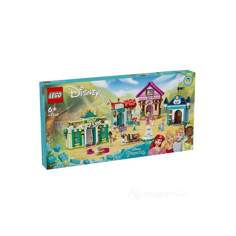 Affascina e intrattieni le bambine da 6 anni in su con il dettagliato set di giochi delle principesse Avventura al Mercato Principesse Disney 43246 La scatola contiene 4 edifici con cui realizzare un villaggio delle principesse Questa colorata e piccola città giocattolo comprende anche uno spazio ripostiglio e un modellino con vaso di fiori panchina e fontana Sono incluse nel set le mini bamboline dei personaggi di Tiana Aurora Cenerentola e Ariel più 2 anelli collezionabili con 4 decorazioni che possono essere cambiate I bambini possono progettare un avventura al mercato inventare storie avvincenti in un villaggio delle fiabe o immaginare nuove avventure grazie ai molti accessori inclusi Questo playset Disney da costruire aiuta a rafforzare la fiducia dei piccoli e ad ispirare il gioco creativo I bambini e gli adulti saranno entusiasti dei dettagli delle diverse costruzioni con colori che si abbinano agli abiti delle principesse Disney I bambini possono inoltre vivere una facile e intuitiva esperienza di costruzione con l app LEGO Builder dotata di strumenti per ingrandire e ruotare i modelli in 3D salvare i set e monitorare i loro progressi
