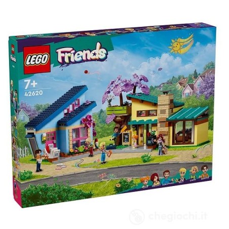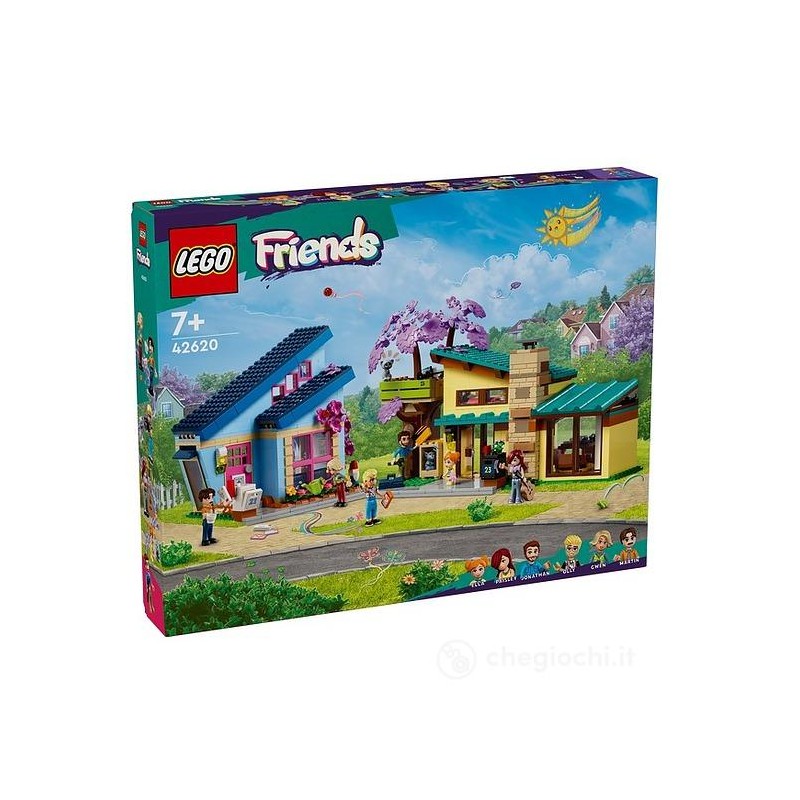 Il divertente set Le Case di Olly e Paisley LEGO Friends 42620 un gioco creativo per bambine e bambini da 7 anni in su permette ai piccoli di conoscere da vicino i 2 personaggi e di esplorare le loro colorate case giocattolo da costruire Questo set di giochi per lo sviluppo sociale include le case giocattolo a due piani di Olly e Paisley una casa sull albero LEGO situata tra i due edifici 5 mini bamboline una micro doll 2 animali domestici e vari accessori Nella casa di Olly c è un accogliente soggiorno con l occorrente per servire il tè pomeridiano e un bagno al piano inferiore La sua camera da letto comprende una cuccia e una ciotola di cibo per il suo gatto oltre a un comodino e alla collezione di disegni di moda di Olly La casa delle bambole di Paisley è dotata di una cucina con tavolo da pranzo piano cottura frigorifero e accessori alimentari Al piano superiore è situata la sua cameretta che il personaggio di Paisley LEGO Friends condivide con la sorella minore ecco dove tiene la chitarra e le foto dei suoi amici Questo set di giochi di ruolo è un idea regalo per una bambina o un bambino da 7 anni in su e per gli appassionati di divertenti giochi in famiglia con le costruzioni LEGO
