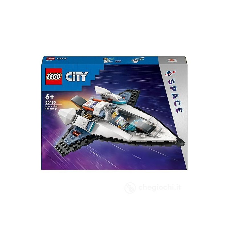 Gli appassionati di navicelle spaziali potranno divertirsi un mondo con il futuristico giocattolo Astronave Interstellare LEGO City 60430 un emozionante set di giochi per bambini e bambine da 6 anni in su per vivere tutta l azione intergalattica delle costruzioni LEGO a tema spazio Questa astronave LEGO monoposto è costruita per la velocità i giovani possono inserire una batteria nel veicolo giocattolo per attivare i propulsori principali apribili e viaggiare così velocissimi verso i confini dello spazio Il set include anche un robot drone giocattolo che si trasforma in un jetpack da far indossare alla minifigure dell astronauta LEGO inclusa Porta il tuo fan dello spazio in un avventura emozionante Scarica l app LEGO Builder ed entra in un mondo di divertimento costruttivo in cui i bambini possono ingrandire e ruotare il modellino del veicolo LEGO in 3D salvare i set e monitorare i progressi fatti I set di giochi LEGO City sono un regalo divertente per tutte le occasioni Grazie a veicoli realistici a edifici ricchi di dettagli e a personaggi stimolanti i piccoli possono passare ore di giochi creativi senza confini usando l immaginazione e la fantasia Aggiungendo questo set agli altri a tema LEGO City spazio venduti separatamente i bambini possono creare tante epiche avventure