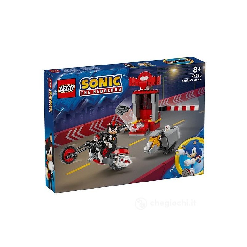 I fan da 8 anni in su di Shadow the Hedgehog possono creare infinite storie e realizzare un divertente piano grazie al set di giocattoli LEGO Sonic the Hedgehog La Fuga di Shadow the Hedgehog 76995 Ispirandosi ai personaggi dei videogiochi i bambini e le bambine possono creare emozionanti avventure mentre costruiscono questo gioco d azione Si divertiranno a far uscire Shadow dalla camera di stasi del laboratorio a correre via in sella alla sua moto giocattolo a superare la barricata apribile prima di distruggere il Badnik RhinoBot che rilascia Cucky Il set offre tantissime opzioni di gioco di ruolo che stimolano la narrazione di storie i fan del famoso riccio blu possono escogitare tanti modi divertenti per far fuggire Shadow con la moto dal RhinoBot I bambini adoreranno creare scene avvincenti con le loro 3 action figure di Sonic preferite comprese in questo set di giochi LEGO Sonic the Hedgehog I giovani costruttori possono vivere un avventura di costruzione facile e intuitiva grazie all app LEGO Builder con cui possono ingrandire e ruotare i modelli in 3D salvare i set e monitorare i loro progressi