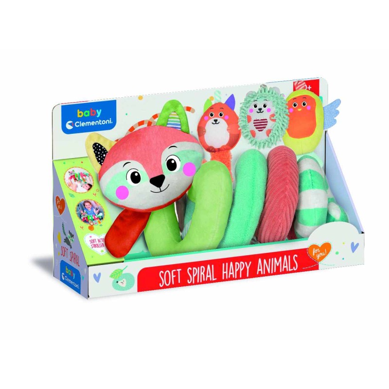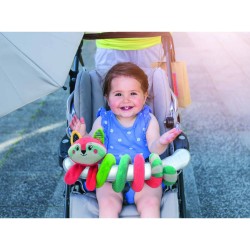 Il simpatico procione e i suoi teneri amici del bosco sono una morbida spirale da passeggino per intrattenere e far divertire il bambino grazie ai diversi materiali e ai sonaglini nei pendenti