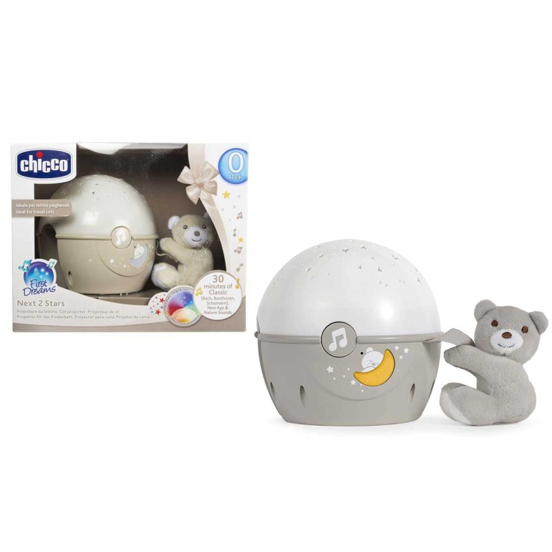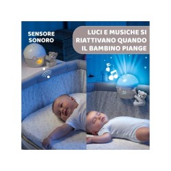 Lampada a cielo stellato per bambini con cambio di colore automatico 3 diversi effetti di luce proiezione notturna proiezione morbida e luce notturna Rileva automaticamente se il bambino piange e riattiva le luci notturne e la musica per aiutarlo a riaddormentarsi 30 minuti di musica rilassante con controllo del volume e tanti generi musicali diversi musica classica pop moderna new age e suoni naturali Il proiettore è dotato di un sistema di fissaggio pratico e sicuro ideale per culle e lettini da viaggio Può essere posizionato anche sul comodino o sulla cassettiera Crea un atmosfera magica prima di andare a letto nella cameretta del tuo bambino grazie alle canzoni al proiettore di luce colorata e alle stelle sul soffitto 3 x AA Mignon 1 5V Alk LR06