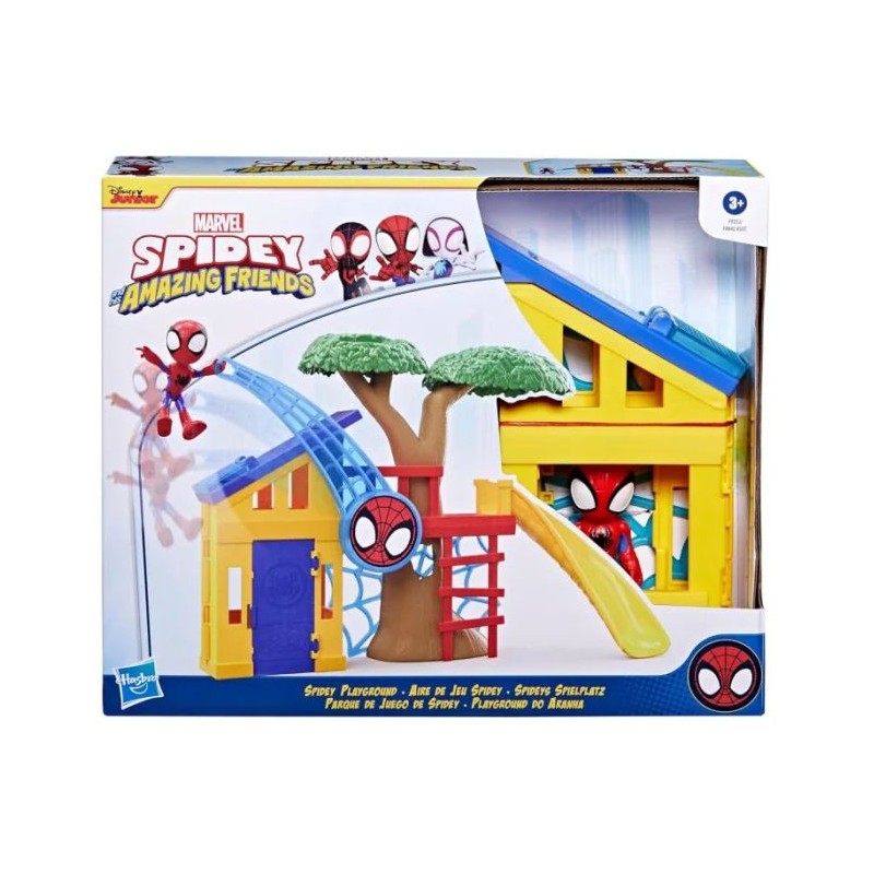 Ispirato ai Luoghi della Serie Il playset è ispirato al parco giochi di Spidey della serie animata di Disney Junior offrendo ai bambini in età prescolare la possibilità di vivere infinite avventure con i loro personaggi preferiti