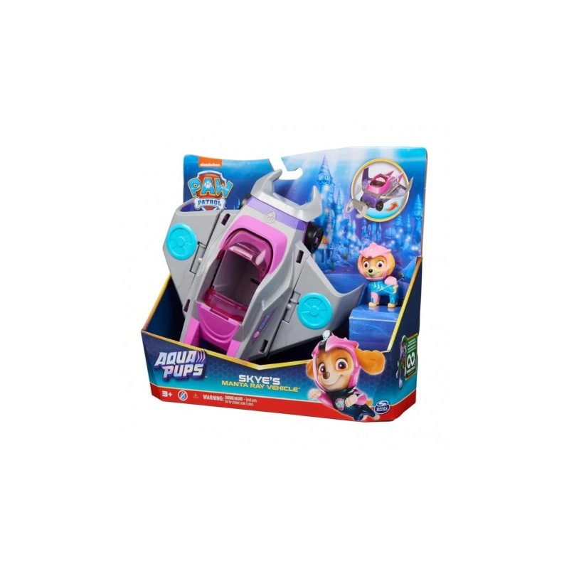 Unisciti a Skye per emozionanti avventure di salvataggio direttamente dagli episodi di Paw Patrol Aqua Pups Il veicolo per avventure marine di Skye giocattolo dei Paw Patrol è dotato di un design super elegante inoltre quando Skye viene inserita al posto di comando si attiva la trasformazione da veicolo di terra a veicolo d acqua a forma di manta Per missioni ancora più divertenti ed emozionanti ispirate alla serie Paw Patrol colleziona tutti i giocattoli Paw Patrol Vivi infinite avventure fantastiche con i tuoi cuccioli eroi preferiti con la collezione regalo Paw Patrol