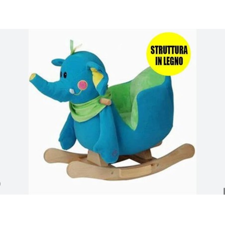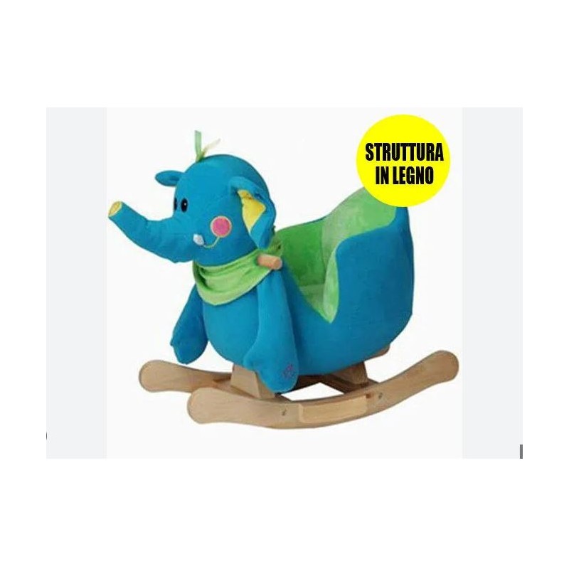 Peluche a dondolo elefante con struttura in legno e cinta per mantenere in sicurezza il bambino durante l utilizzo
