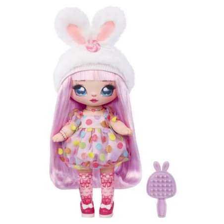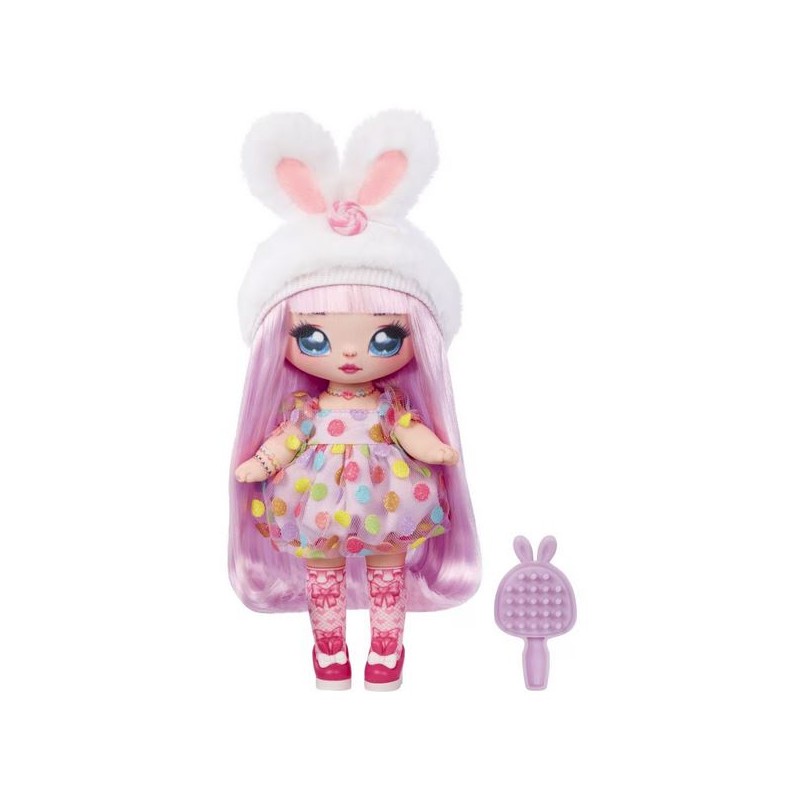 BELLISSIMA BAMBOLA FASHION MORBIDA Bailey Bunny ha lunghi e splendidi capelli lisci viola con frangetta usa la spazzola inclusa per acconciarli