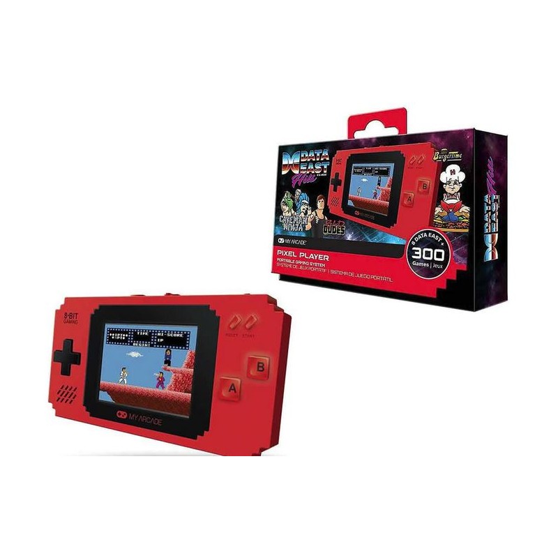 Pixel Player Sistema di gioco portatile con 300 giochi inclusi 8 titoli Data East Dispositivo di gioco portatile con 300 videogiochi integrati inclusi 8 titoli di giochi classici e amati di Data East che non puoi trovare da nessun altra parte BurgerTime Karate Champ Bad Dudes e molto altro Caratteristiche Ricco di 300 giochi con titoli Data East classici e memorabili Schermo a colori da 2 75 Offre divertenti accenti a 8 bit che piaceranno sia ai giocatori classici che ai nuovi giocatori Controllo del volume e jack per cuffie da 3 5 mm per collegare le cuffie Alimentato da 4 batterie AAA o da qualsiasi cavo Micro USB non incluso