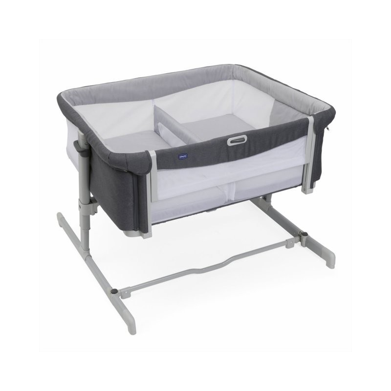 La culla è dotata di una barriera divisoria trasparente con inserto in rete che aiuta i gemelli a vedersi e sentirsi