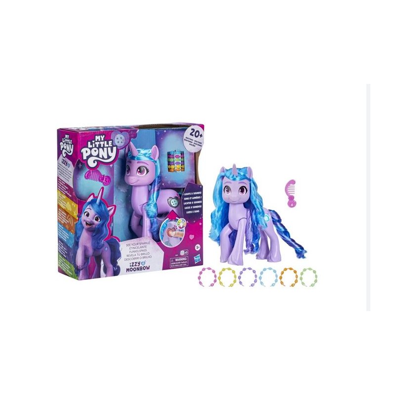 ECCO A VOI IZZY MOONBOW Izzy è un Unicorno viola di Bridlewood ispirato al personaggio del film My Little Pony Una nuova generazione e alla serie My Little Pony Make Your Mark
