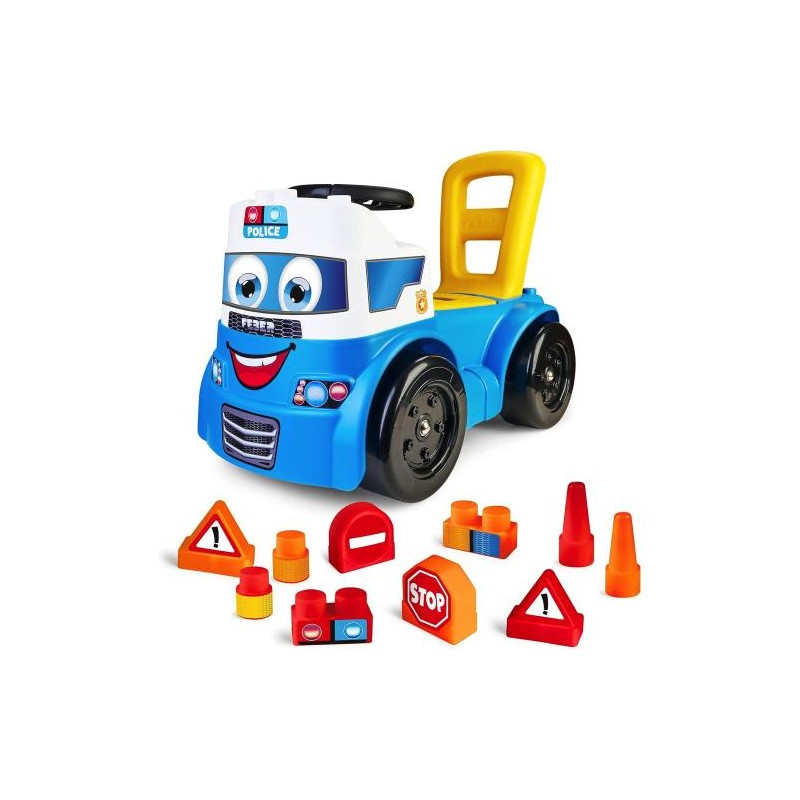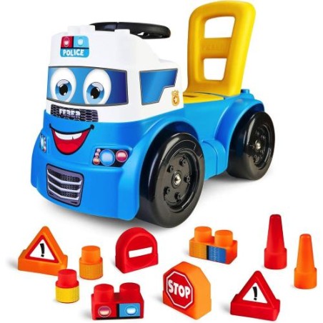 Motofeber Block Polizia di Stato è un 3 in 1 primi passi spingi e vai e con gioco delle forme dopo aver giocato sarà possibile riporre tutti i blocchi nel vano porta oggetti