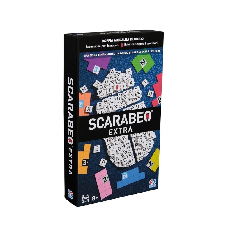 Scarabeo Extra Spin Master Scarabeo Extra è la prima espansione dell inimitabile gioco di parole Scarabeo Per una sfida a due giocatori o come espansione del classico Scarabeo questa nuova versione ti porterà oltre Scarabeo Extra contiene tutto l occorrente per giocare a Scarabeo in due giocatori con tabellone tessere e leggii