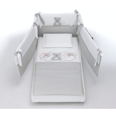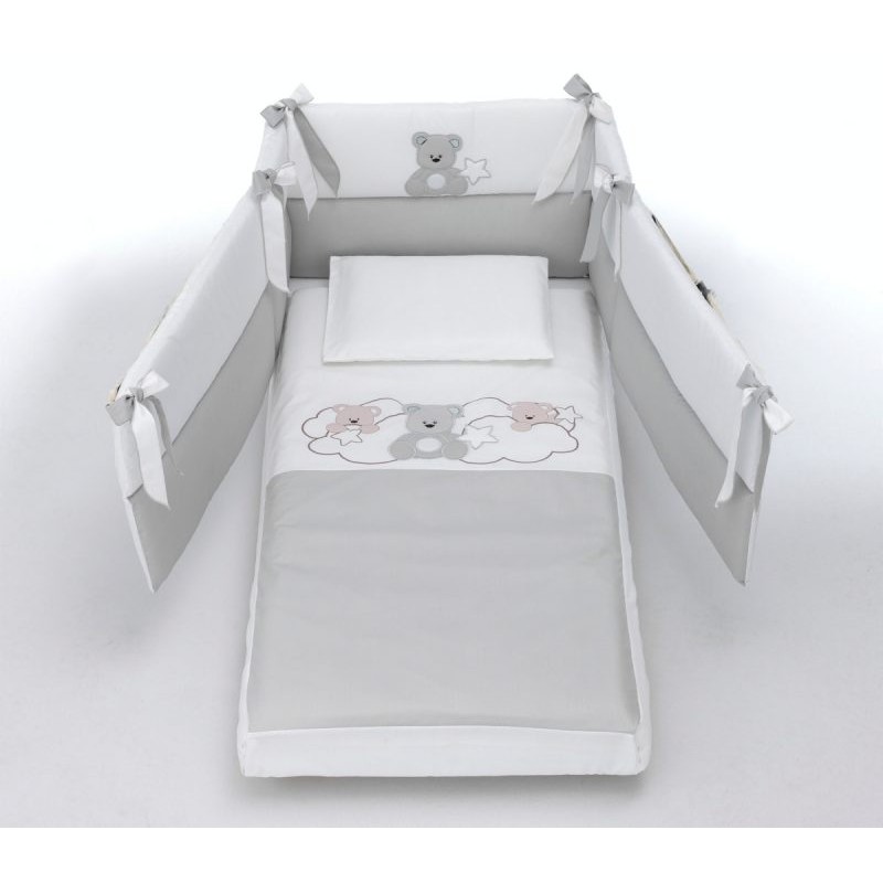 Corredino tessile lettino 3pz BContact Love Me Set piumone piumone estraibile paracolpi e federa Varianti colore tessuto Bianco Grigio