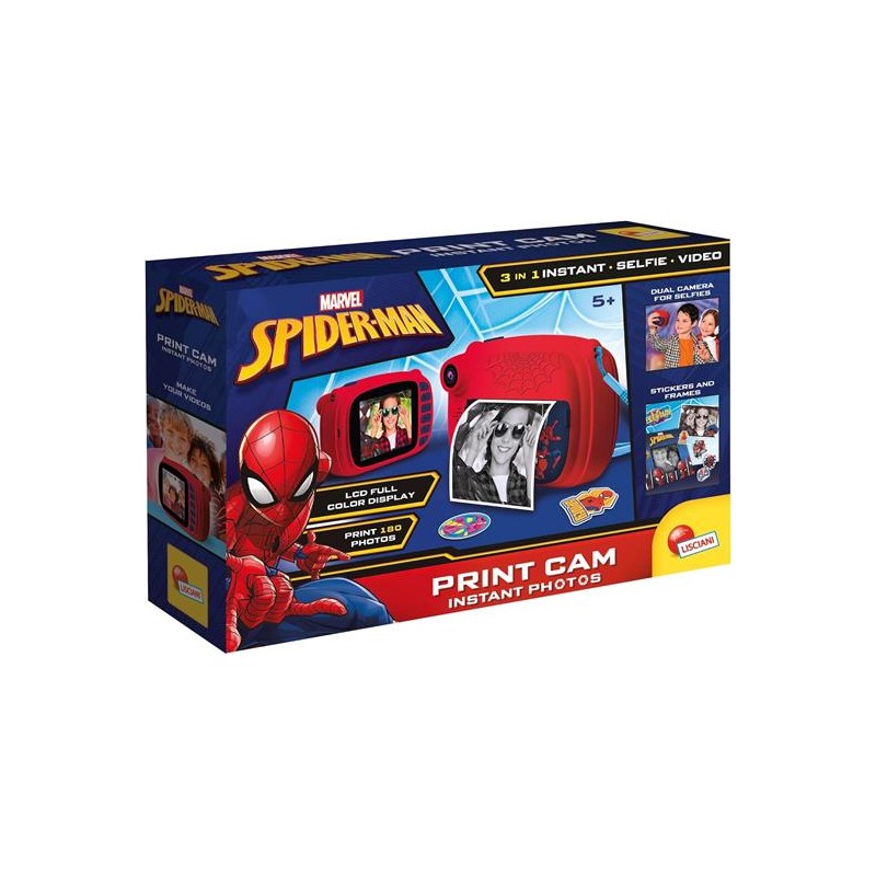 Una fotocamera istantanea di Spider Man per creare e stampare foto con effetti divertenti Molto facile da usare permette di realizzare video e di raccogliere e condividere foto con gli amici E in più consente di scattare selfie grazie alla dual camera Con le fantastiche cornici di Spider Man potrai collezionare tutte le tue foto