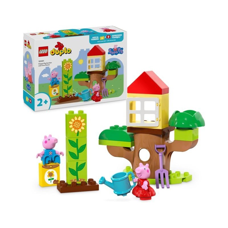 Gioco creativo per bambine e bambini da 2 anni in su a tema natura lascia che i piccoli in età prescolare coltivino la loro passione per la natura aiutando i fiori a crescere con il playset Il Giardino e la Casa sull Albero di Peppa Pig LEGO DUPLO
