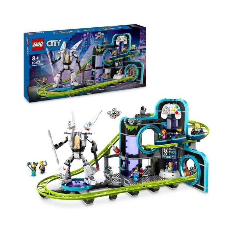 Set con montagne russe giocattolo questo gioco d avventura per bambini e bambine da 8 anni in su il set LEGO City delle Montagne Russe di Robot World offre ore di divertimento con un parco giochi funzionante ricco di dettagli