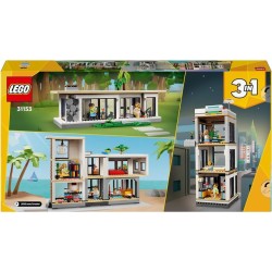 3 case giocattolo da costruire in 1 questo gioco per bambini e bambine da 9 anni in su il set LEGO Creator 3 in 1 la Casa Moderna permette di costruire e ricostruire 3 diversi modellini di case ricche di dettagli utilizzando gli stessi mattoncini