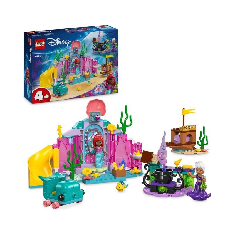 Pronti per i giochi con le Principesse questo set costruibile contiene una caverna di cristallo ispirata al programma Ariel Disney Junior le mini bamboline di Ursula e Ariel LEGO Disney e il pesce Flounder LEGO Disney