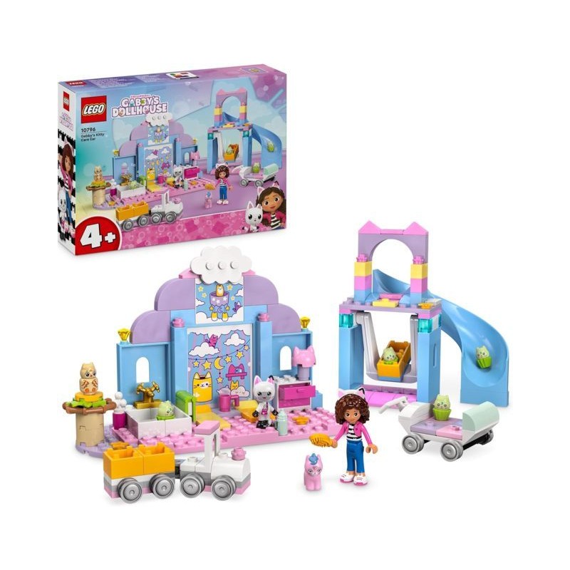 Set da gioco con casa delle bambole questo giocattolo LEGO Gabby s Dollhouse per l intrattenimento inculde un altalena uno scivolo un passeggino a forma di cupcake a 4 posti una vasca treno giocattolo dei letti e un nido per Baby Miao Gufo