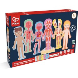 DETTAGLI REALISTICI il set da 63 pezzi è composto da una base in legno una sagoma del corpo con magneti per un ragazzo e una ragazza uno scheletro un sistema circolatorio un sistema muscolare e un sistema nervoso con organi oltre a sei schede a doppia faccia con illustrazioni del corpo umano
