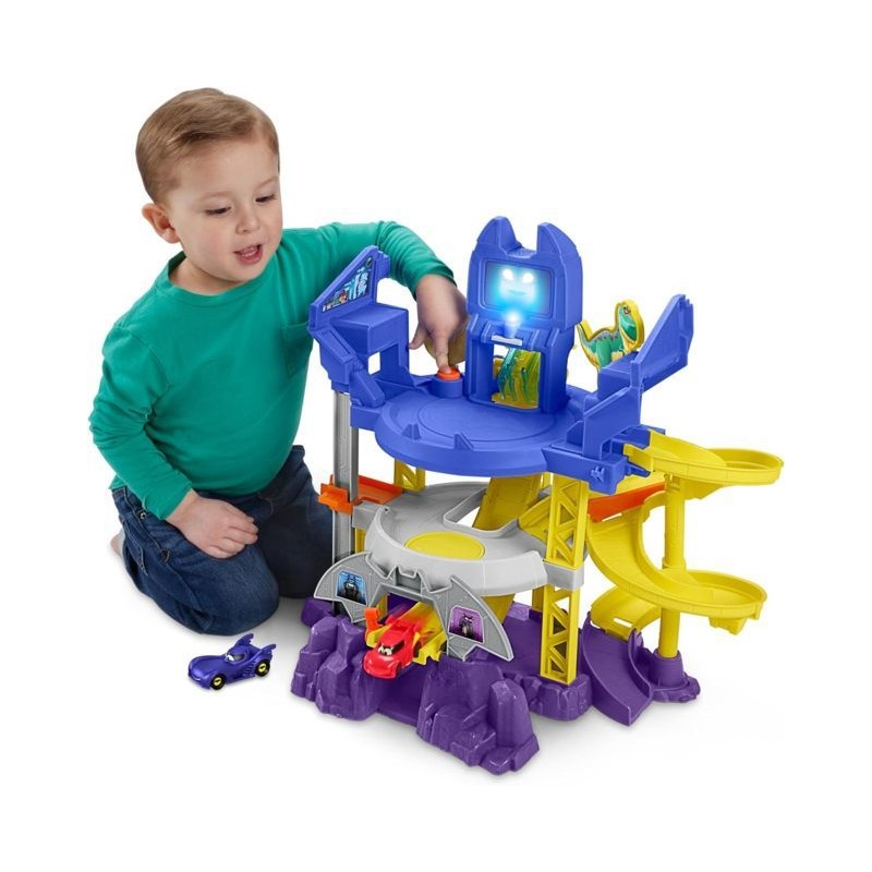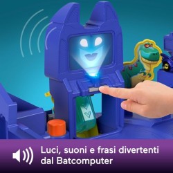 I bambini possono correre e inseguire le macchinine con questo playset con pista Batwheels ispirato alla Batcaverna con luci e suoni fantastici