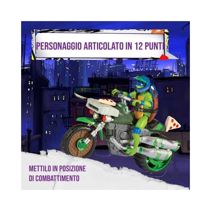 ORIGINALE GIOCHI PREZIOSI Quando la lotta si fa dura le Tartarughe Ninja inviano Leo e la sua Ninja moto Kick Cycle a risolvere il problema Una moto a doppio scarico dettagliata e un esclusiva Acti