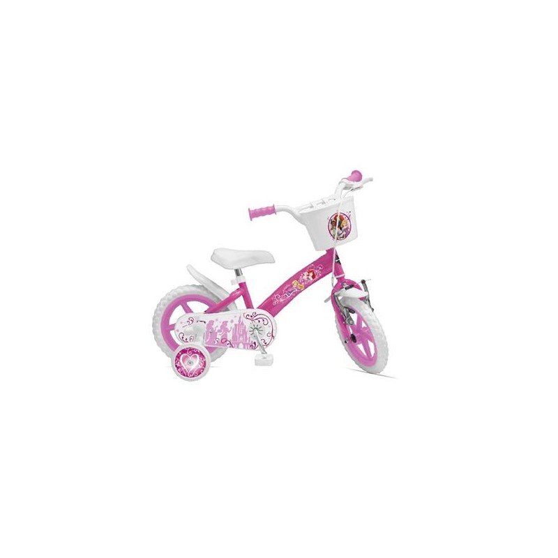 Bicicletta per bambini 12 pollici con licenza Ufficiale Disney 1 freno anteriore Telaio in ferro verniciato ruote piene EVA movimenti in nylon Stabilizzatori inclusi volante e sellino regolabil