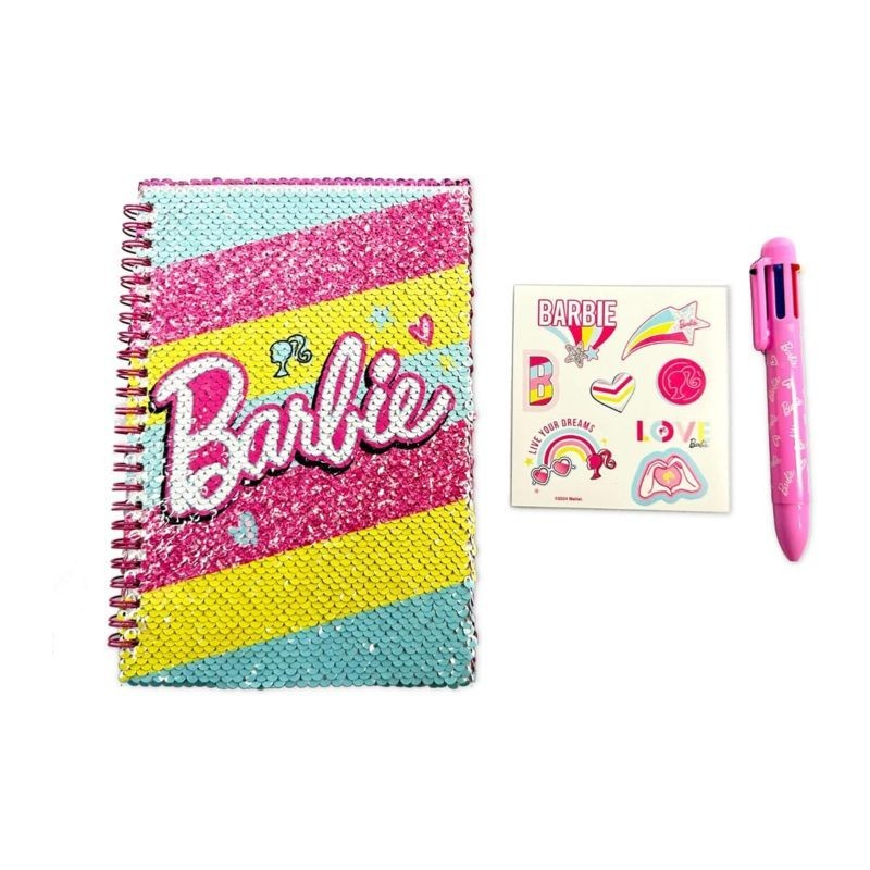 IDEA REGALO Con le sue paillettes reversibili sulla copertina la penna multicolor e gli adesivi inclusi il Barbie My Notebook è un ottima idea regalo per compleanni festività o altre occasioni speciali Regala creatività e divertimento permettendo alle bambine di esprimere la propria personalità attraverso la scrittura e il disegno