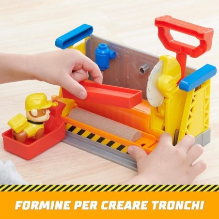 OFFICINA DI RUBBLE questo set di Rubble Crew include divertenti accessori da costruzione per bambini per creare stampi per tronchi praticare fori e tagliare in cioppi usando il trapano giocattolo