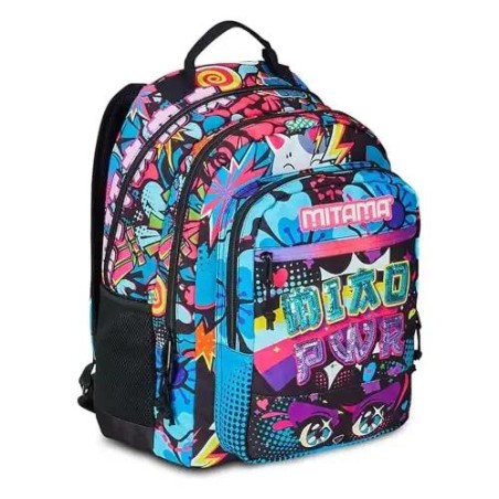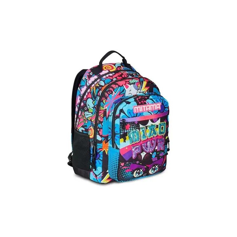 Spallacci imbottiti e rivestiti in tessuto e rete Zaino scuola 4 zip Effetto speciale con paillettes ricamate Vendita in abbinamento con Scatola 8 Pennarelli Fluo