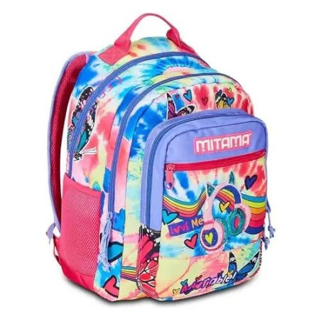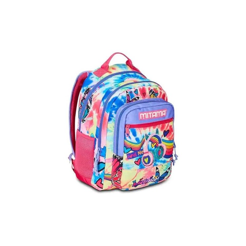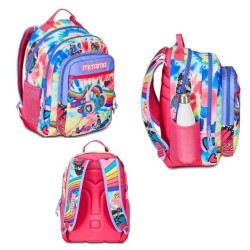 Spallacci imbottiti e rivestiti in tessuto e rete Zaino scuola 4 zip Effetto speciale con pailettes ricamate Vendita in abbinamento con Scatola 8 Pennarelli Fluo