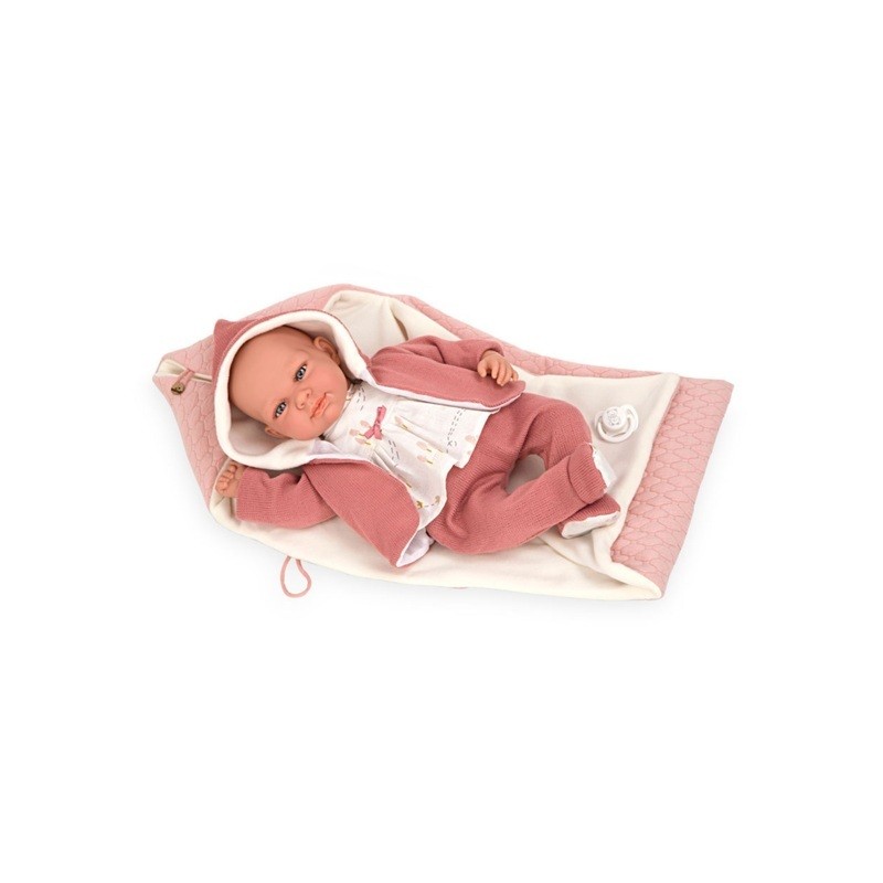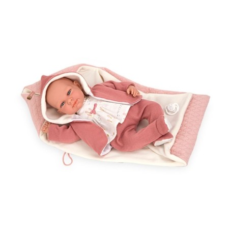 Bambola 40 cm con corpo morbido e funzione pianto Indossa un completo rosa con giacchina Coperta inclusa Bambola che piange Scatola vetrina Bambola che piange Made in Spagna