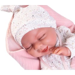 Il mio piccolo Reborn è la nuova famiglia di Reborn de Bambole Antonio Juan Questo piccolo vince in realismo e tenerezza in ogni dettaglio per farti godere l entusiasmante mondo dei Reborns Lluna sta sognando felice all interno del suo sacco di verme con un fiocco abbinato del suo berretto e del suo pigiama Porta un ciuccio per rilassarti mentre dormi Può essere posizionato in molte posizioni come un vero bambino perché le sue estremità ruotano ha movimento il che lo rende più realistico Prendi un ciuccio per rilassarti quando dormi Peso 705 g e misura 33 cm Include un libro di famiglia per il tuo Reborn