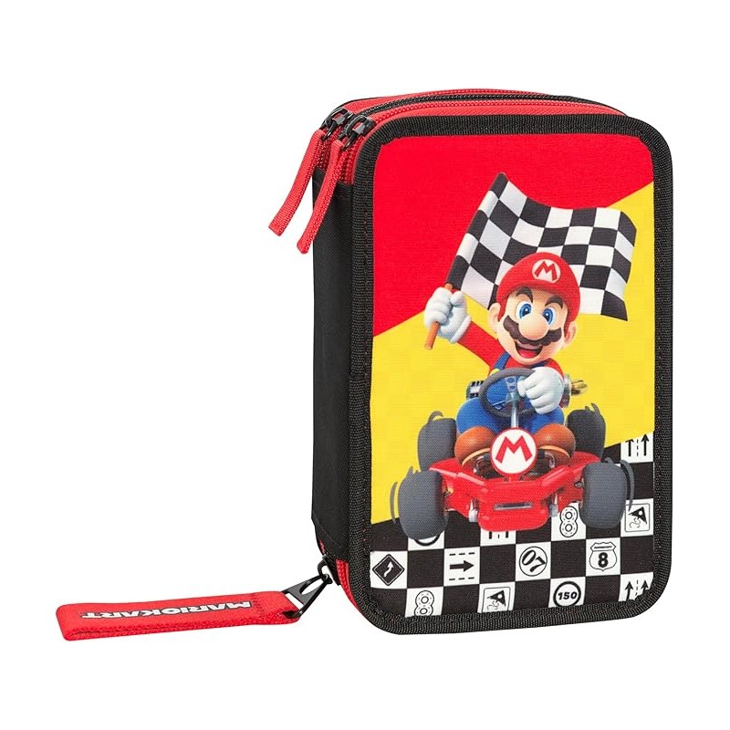 IDEALE PER LA SCUOLA Questo astuccio personalizzato Mario Kart è ideale per organizzare e portare con sé la cancelleria per la scuola Dotato di 3 ampi scomparti e di chiusura a zip è comodo da riporre nello zaino