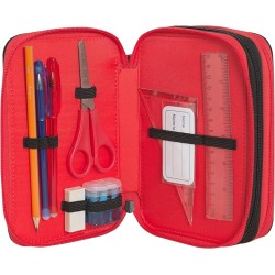 AMPIO E COMPLETO L astuccio è ampio ed è completo di tutta la cancelleria necessaria per la scuola Include 18 pennarelli 18 matite colorate matita gomma penna cancellabile blu Frixion penna rossa righello temperino con serbatoio forbici con punta arrotondata squadra ed etichette portanome