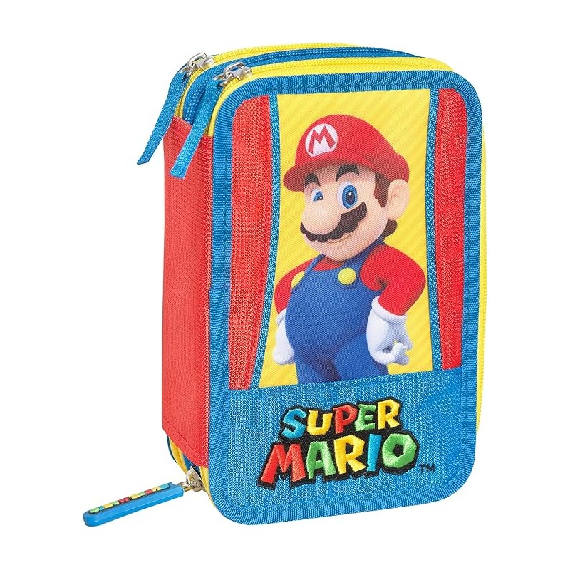 IDEALE PER LA SCUOLA Questo astuccio personalizzato Super Mario è ideale per organizzare e portare con sé la cancelleria per la scuola Dotato di 3 ampi scomparti e di chiusura a zip è comodo da riporre nello zaino