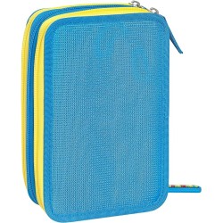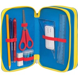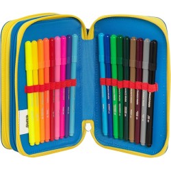 AMPIO E COMPLETO L astuccio è ampio ed è completo di tutta la cancelleria necessaria per la scuola Include 18 pennarelli 18 matite colorate matita gomma penna cancellabile blu Frixion penna rossa righello temperino con serbatoio forbici con punta arrotondata squadra ed etichette portanome